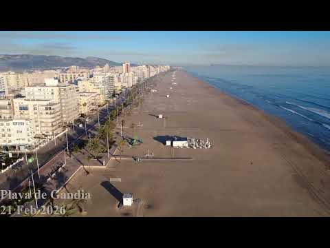 This relaxing 4K drone video captures the peaceful beauty of Playa de Gandía during the early hours of the morning. As the Mediterranean coastline awakens, soft golden light spreads across the wide sandy beach, highlighting the gentle waves and calm sea conditions.